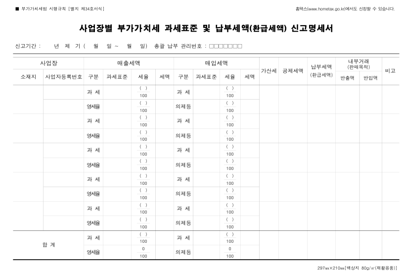 「부가가치세법 시행규칙」 [별지 제34호서식] 은