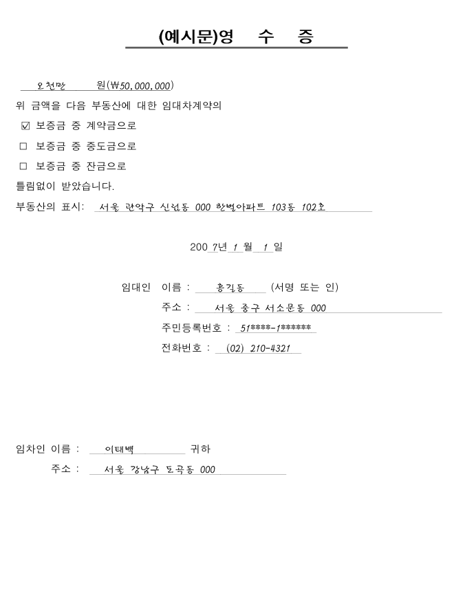 “이 글은 「영수증(임대차보증금용)」 표준 예시문을 기반으로 작성되었습니다.”